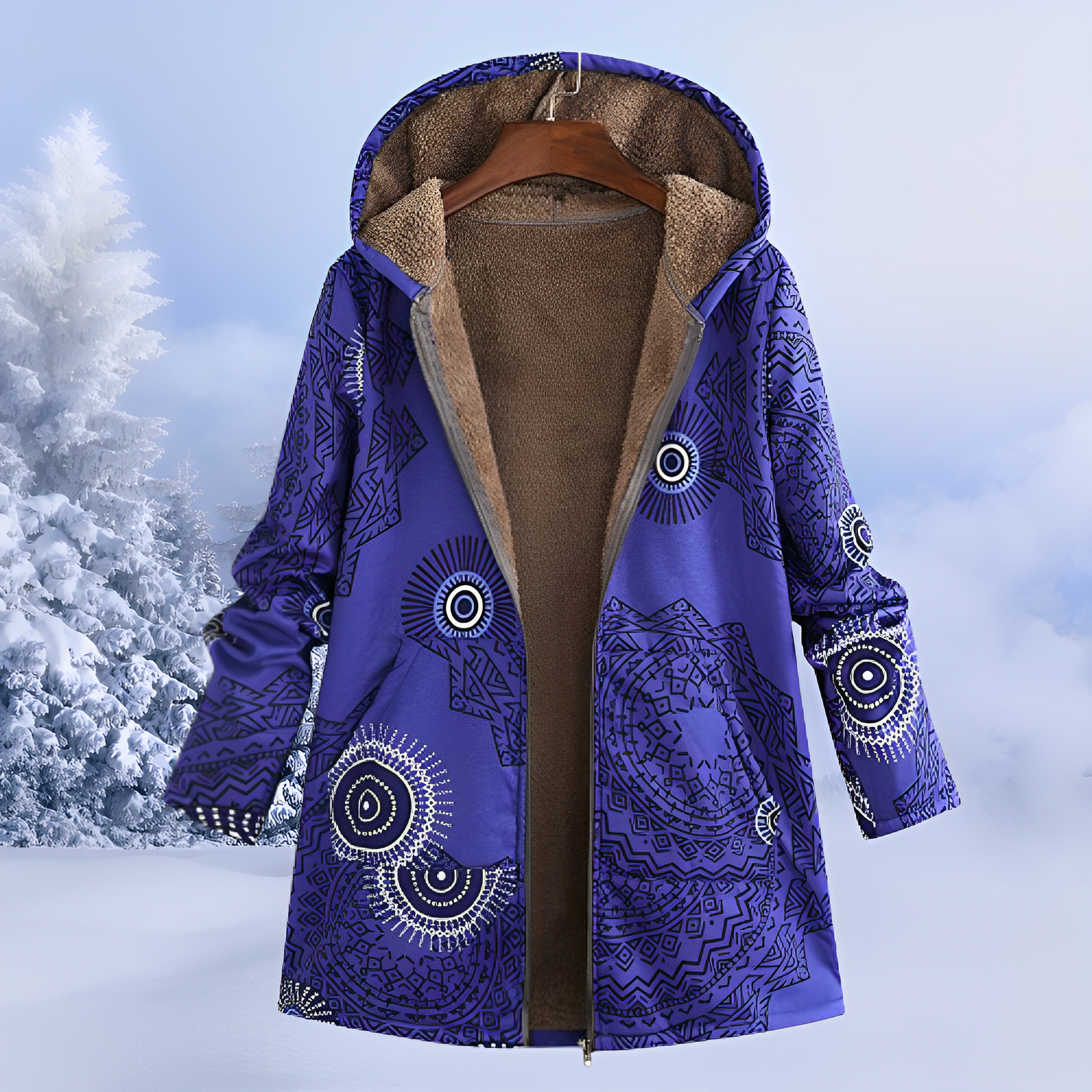Aria – Ocieplana damska kurtka z kapturem i etnicznym wzorem