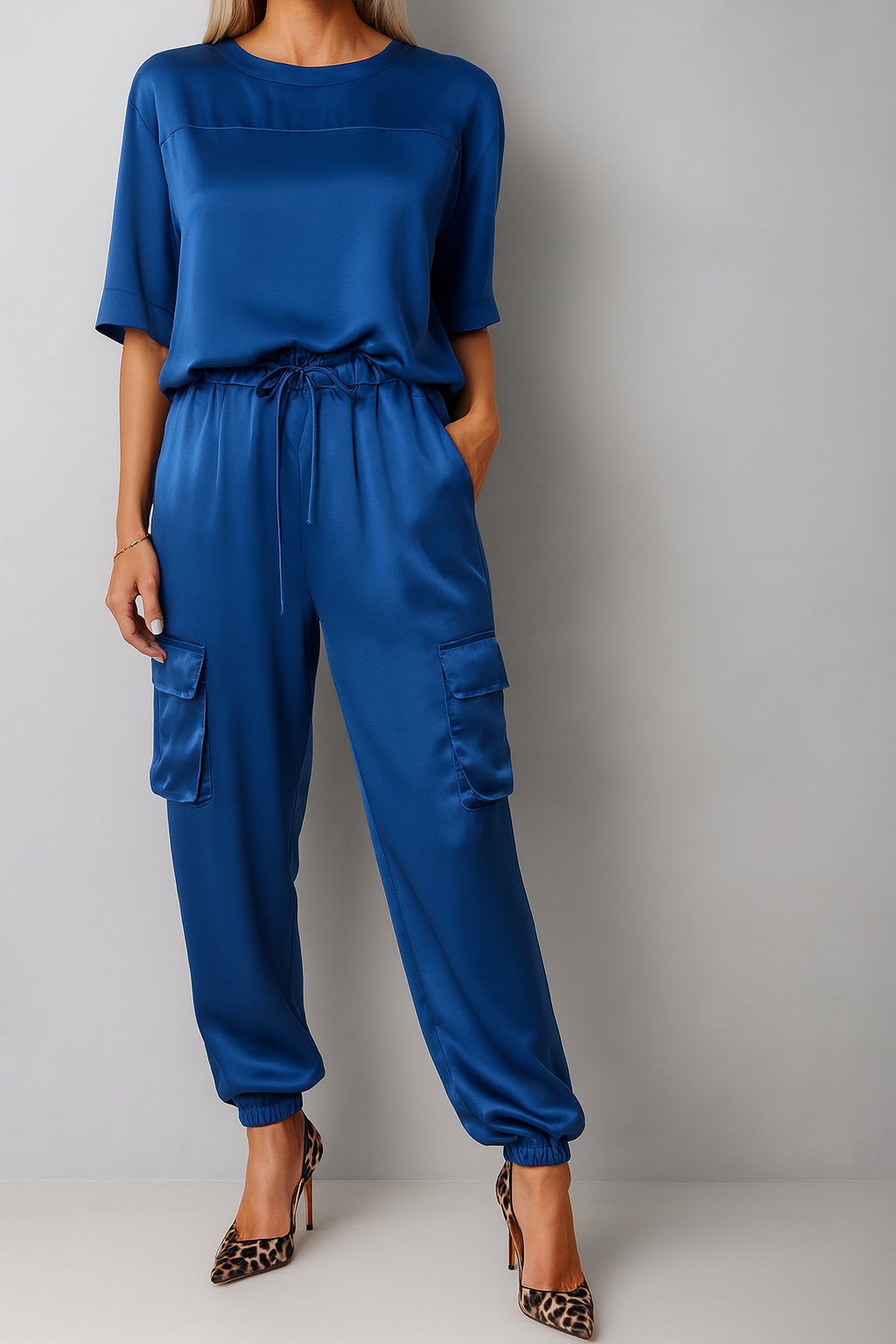 • Praktyczny Detal: Elastyczna talia i funkcjonalne kieszenie zwiększające wygodę