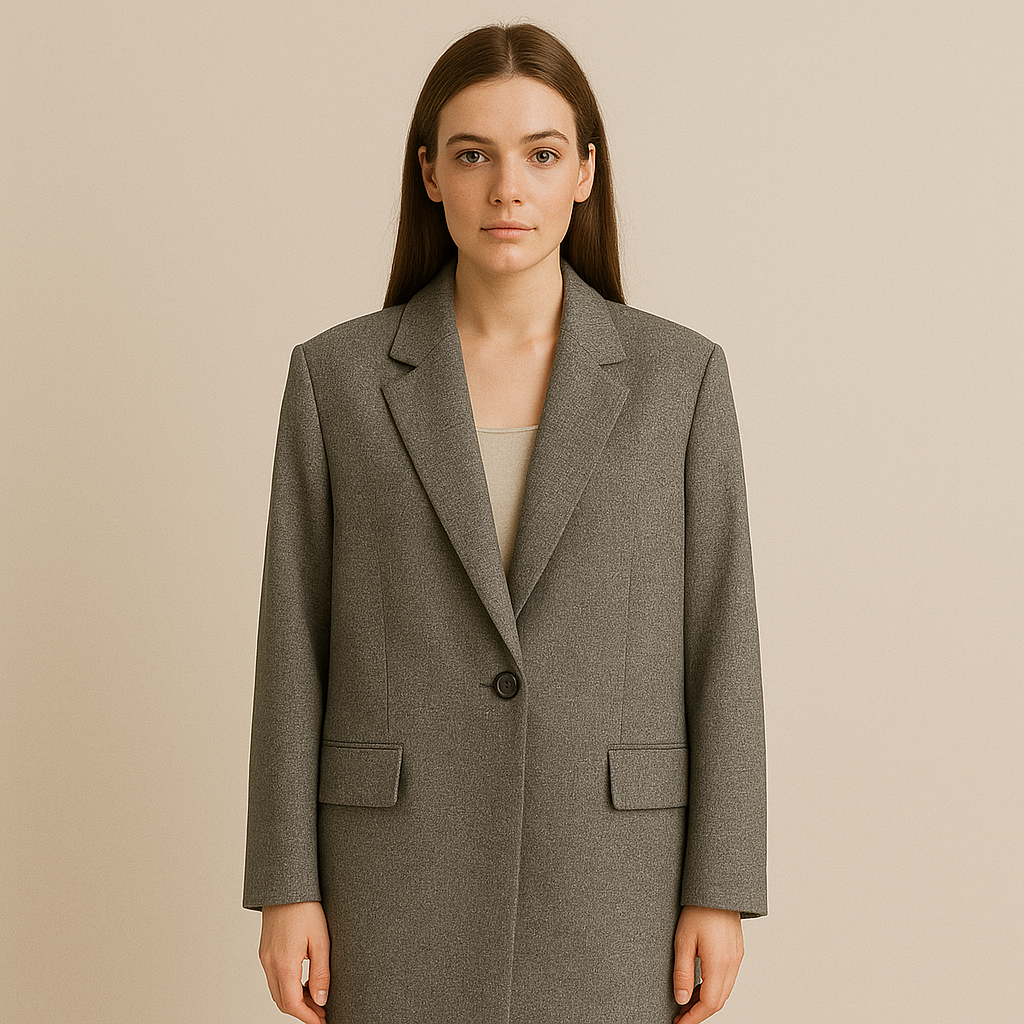 Szary długi żakiet oversize z dużym guzikiem